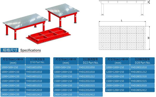 工裝平臺的選用需根據(jù)產(chǎn)品的大小,形狀而定,鈑金類及小型鋼結(jié)構(gòu)件多采用D16系列的平臺;